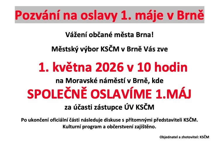 OSLAVY 1. MÁJE – 1. května v 10 hod. na Moravském náměstí v Brně,